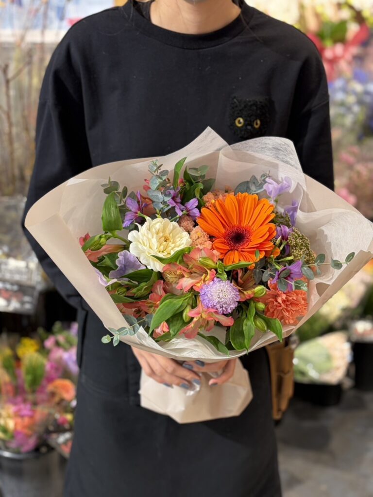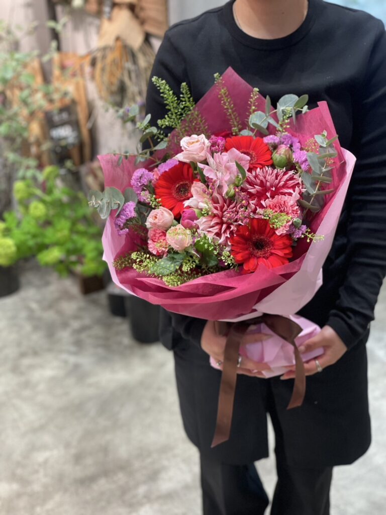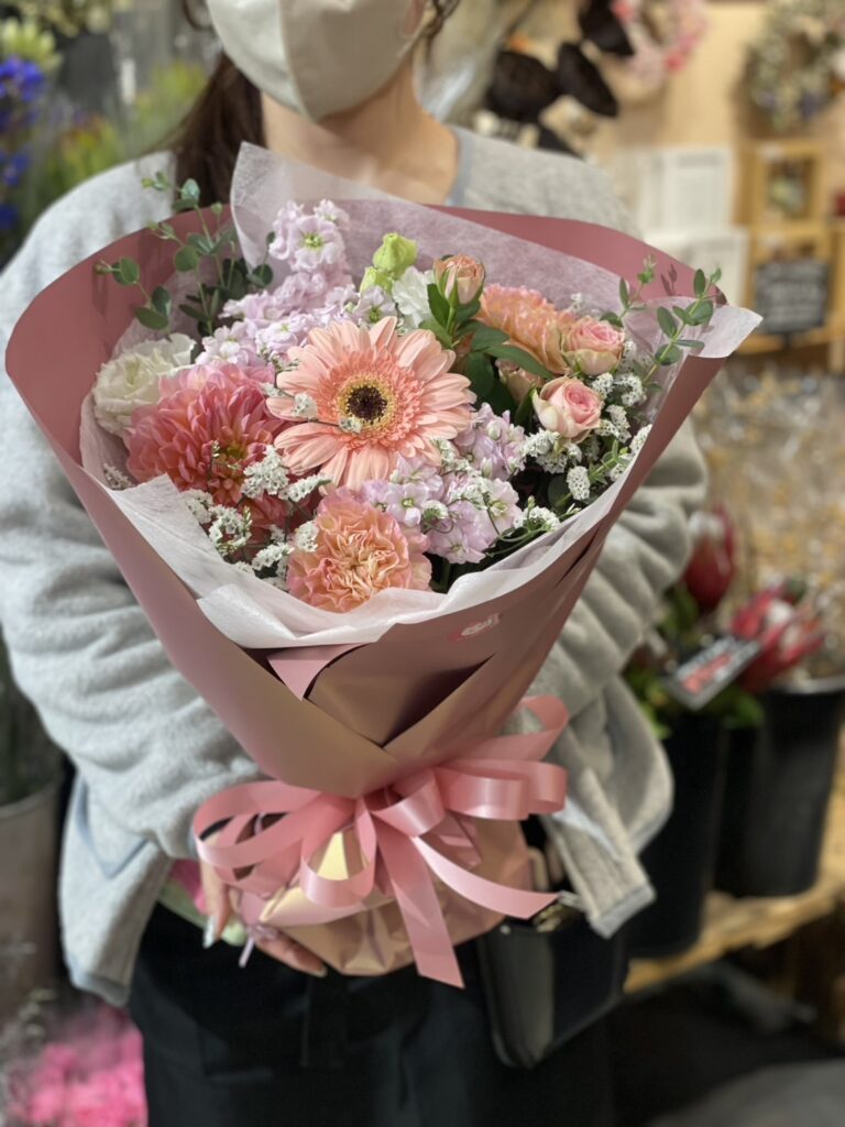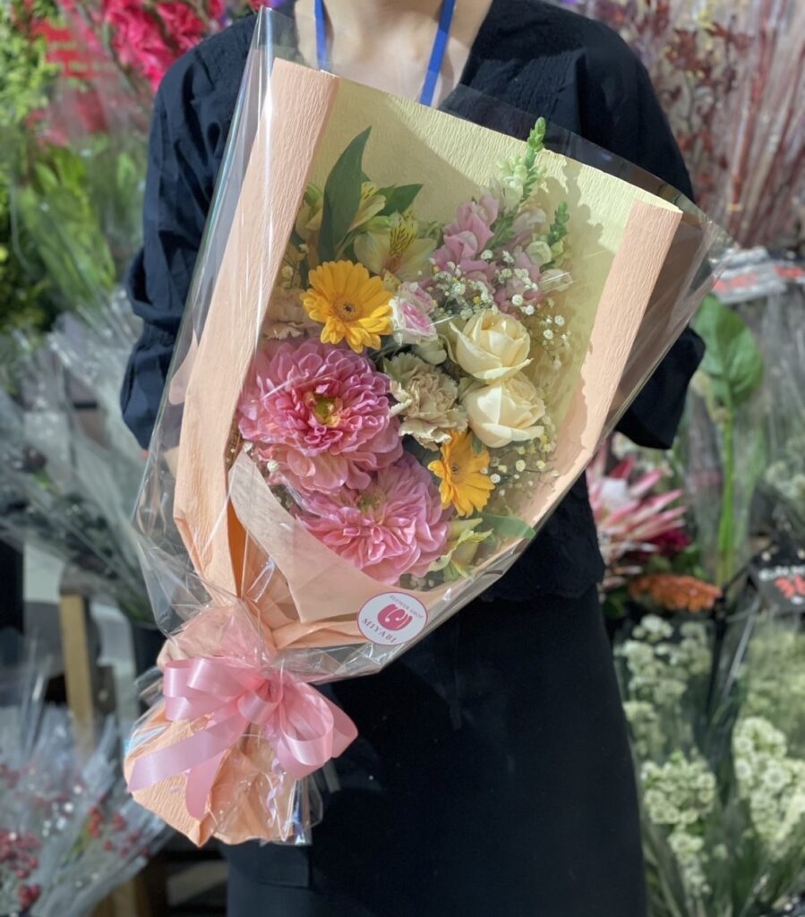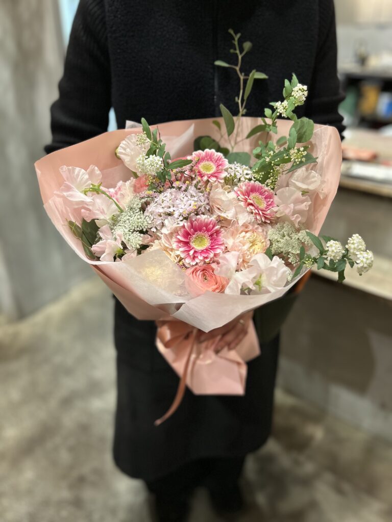 コンパクトで可愛い形の花束です