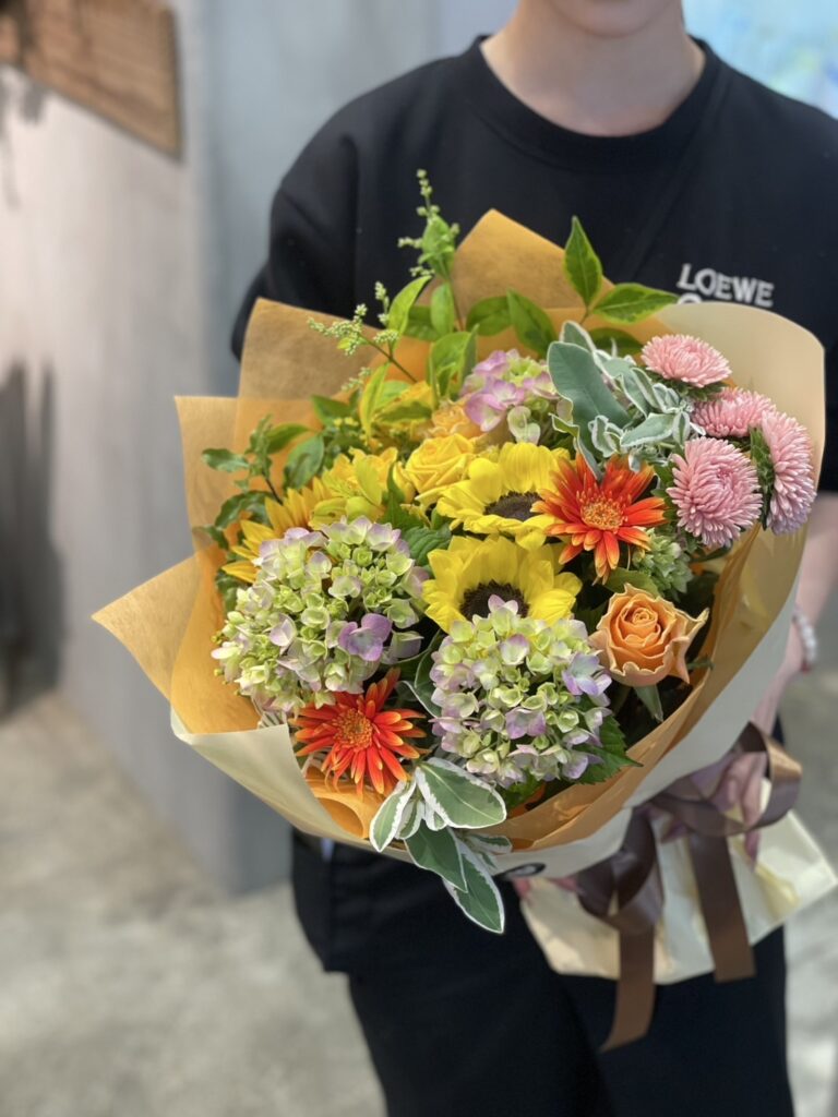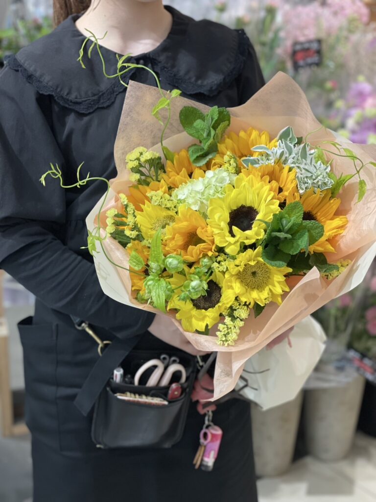 片面で作る花束のため長さとボリュームを感じられます